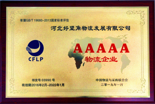 2016年2月被中國物流與采購聯合會評為“AAAAA物流企業”